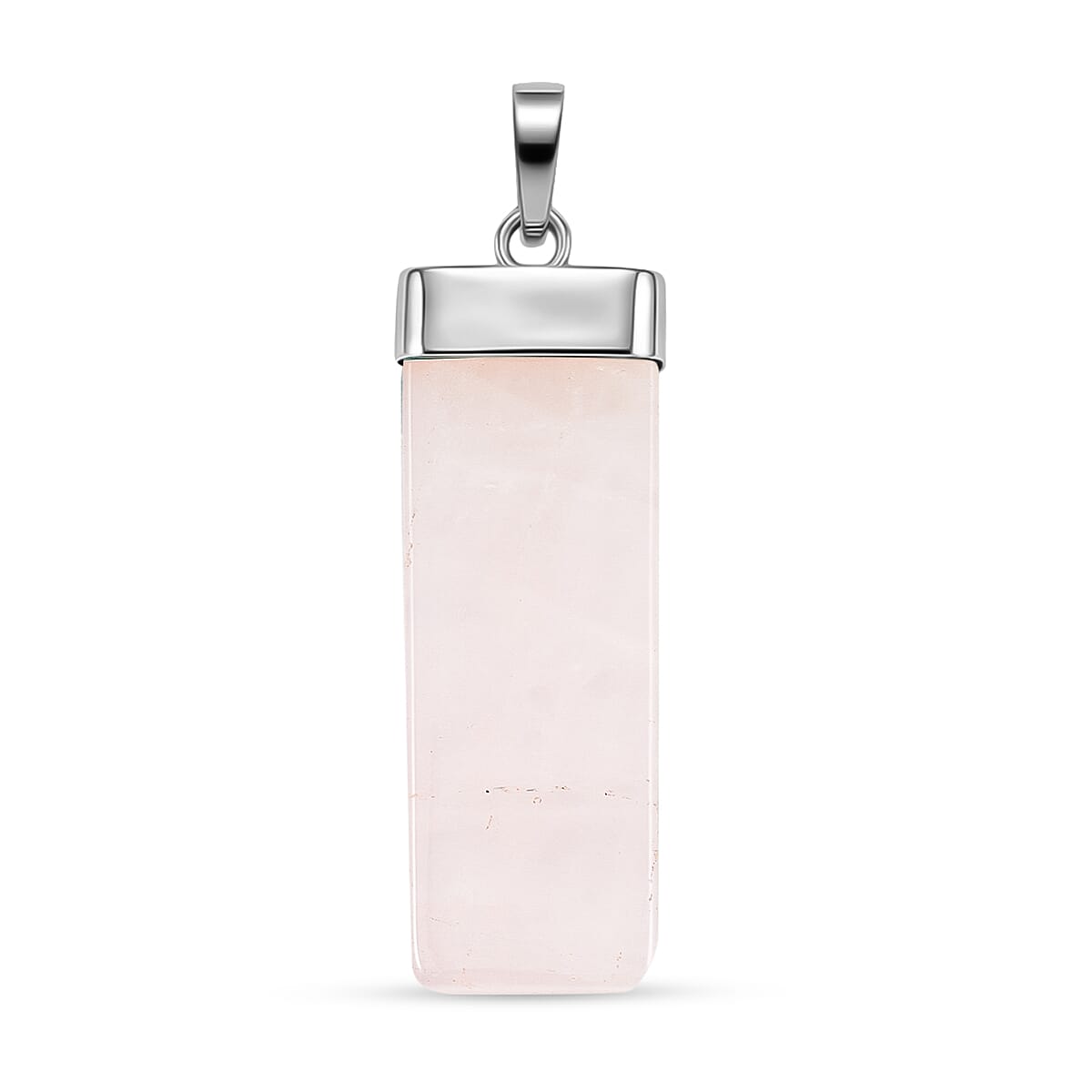 Rose Quartz 36.00 ctw Rectangle Pendant in Silvertone with Stainless Steel Necklace 20 Inches