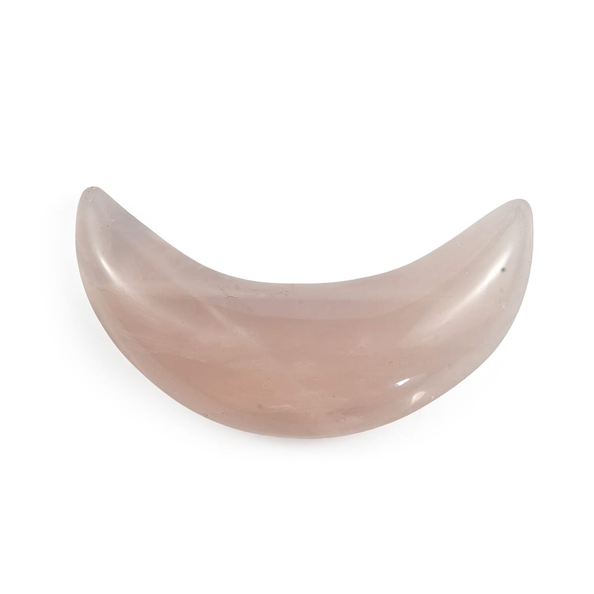Carved into a graceful moon-inspired form, this rose quartz piece highlights soft pink hues and flowing contours. Its elegant shape and polished surface create a soothing decorative presence. Designed to bring balance, warmth, and visual serenity to your space.