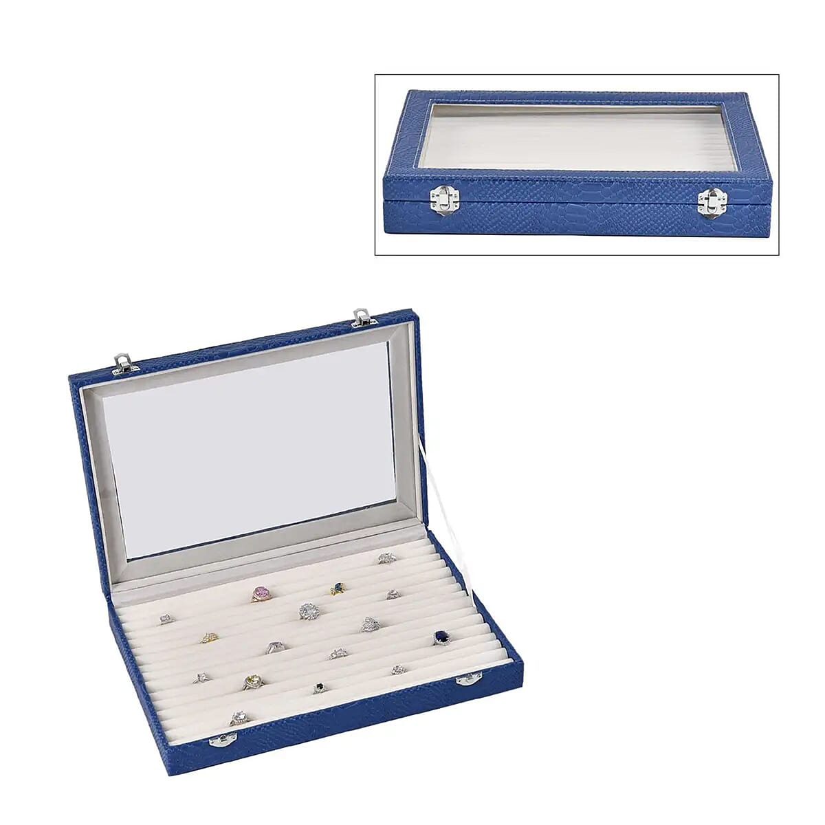 Royal Blue Dragon Skin Pattern Faux Leather 150 Slot Ring Box with Glass Window