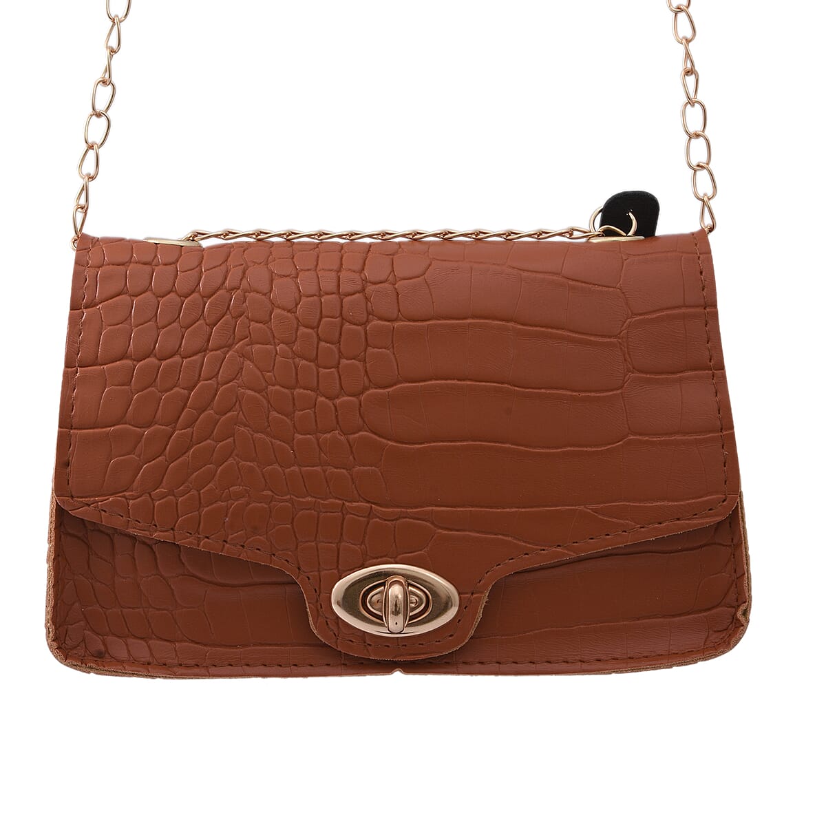 Royal Siamese Brown Croc Embossed Faux Leather Mini Handbag with Detachable Chain Shoulder Strap