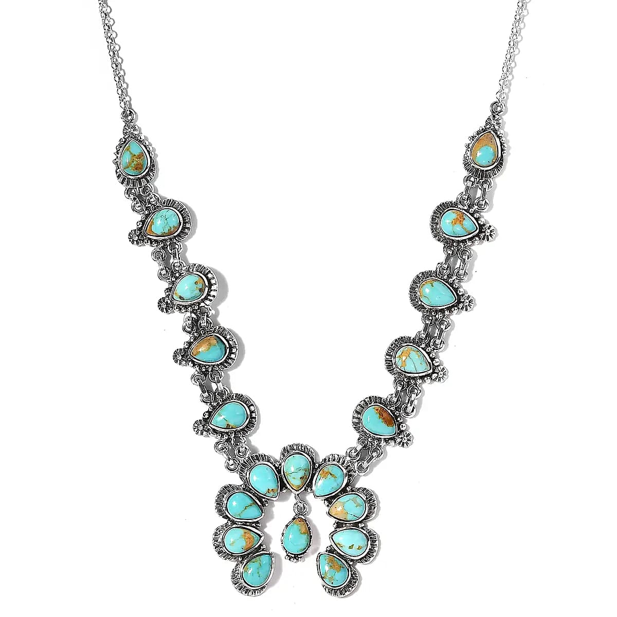 Royston Turquoise Necklace | Squash Blossom Necklace |Sterling Silver Necklace | 18 Inch Necklace | Gifts For Her 14.15 ctw