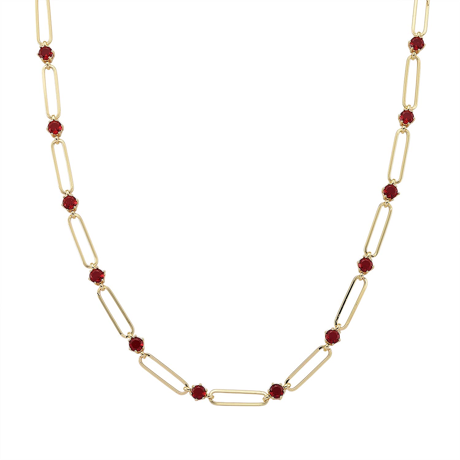 Ruby Color Austrian Crystal Paperclip Chain Necklace in Goldtone (20-22 Inches)