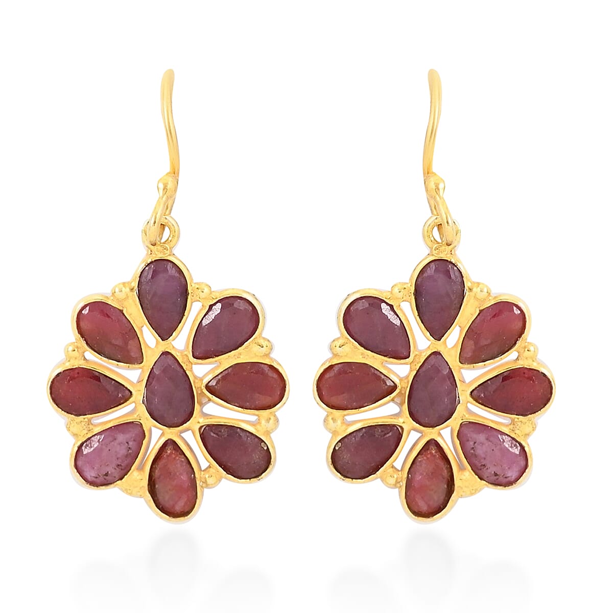 Ruby Dangle Flower Earrings in 14K YG Over Sterling Silver 1.70 ctw