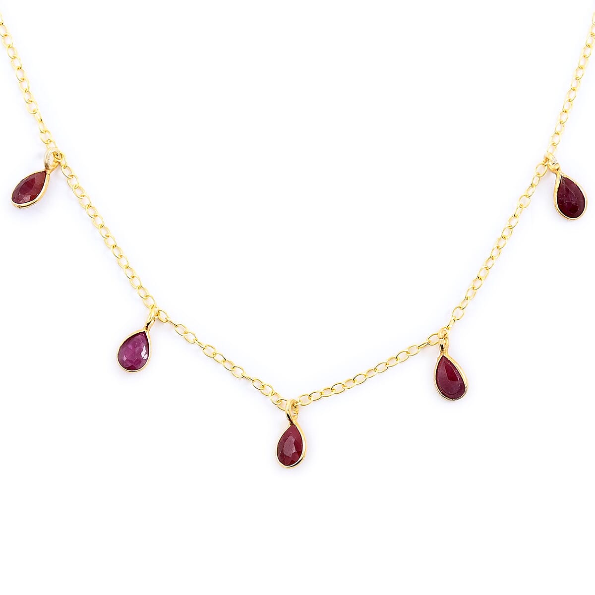 Ruby Drop Necklace 17 Inches in 14K Yellow Gold Over Sterling Silver 1.70 ctw