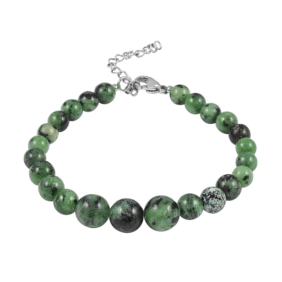 Ruby Zoisite Beaded Bracelet in Rhodium Over Stainless Steel (7-9In) 72.00 ctw