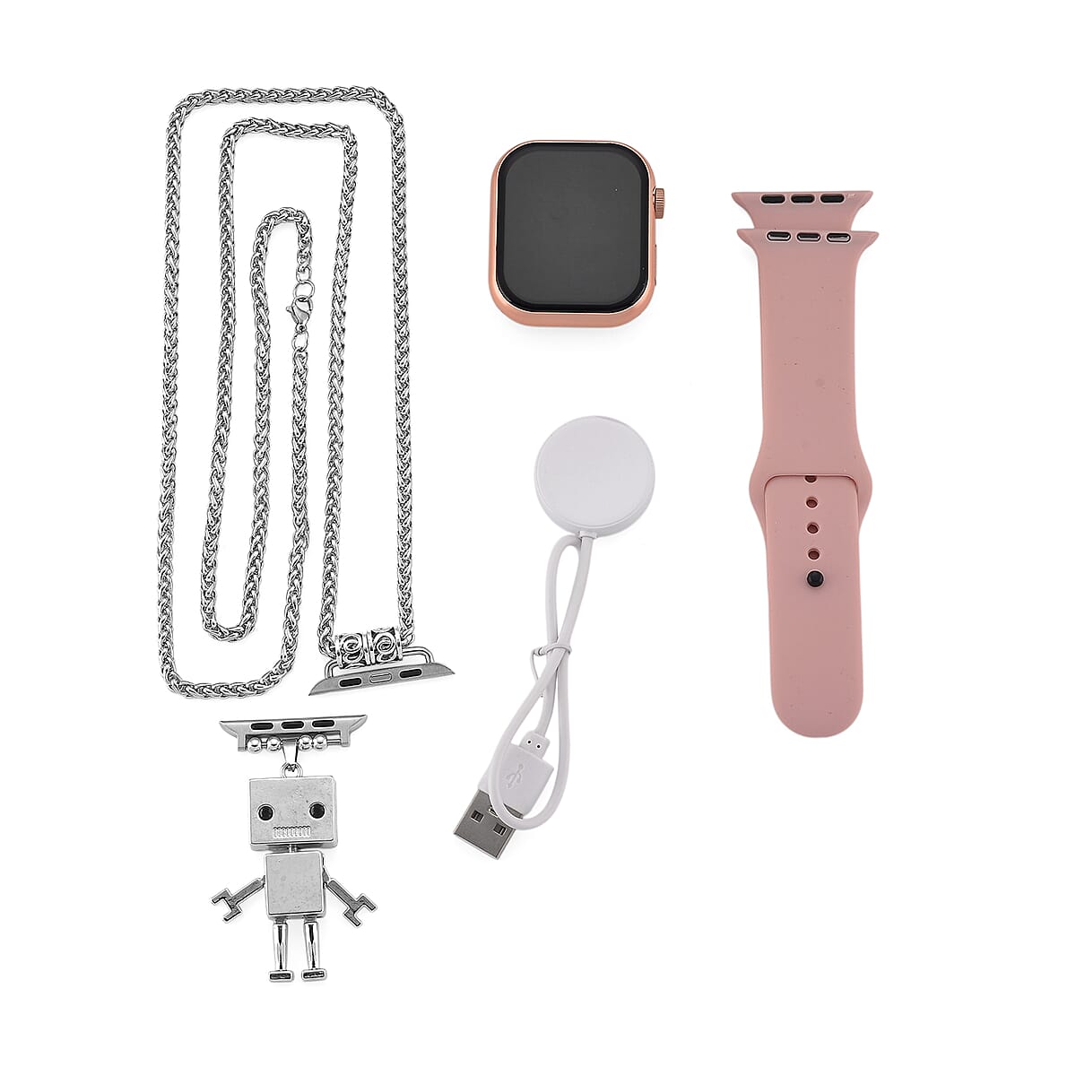 S9 Smart Multi -functional Rose Gold Smart Watch with Pink Silicone Strap and Robot Pendant Necklace (36 Inches) in Silvertone