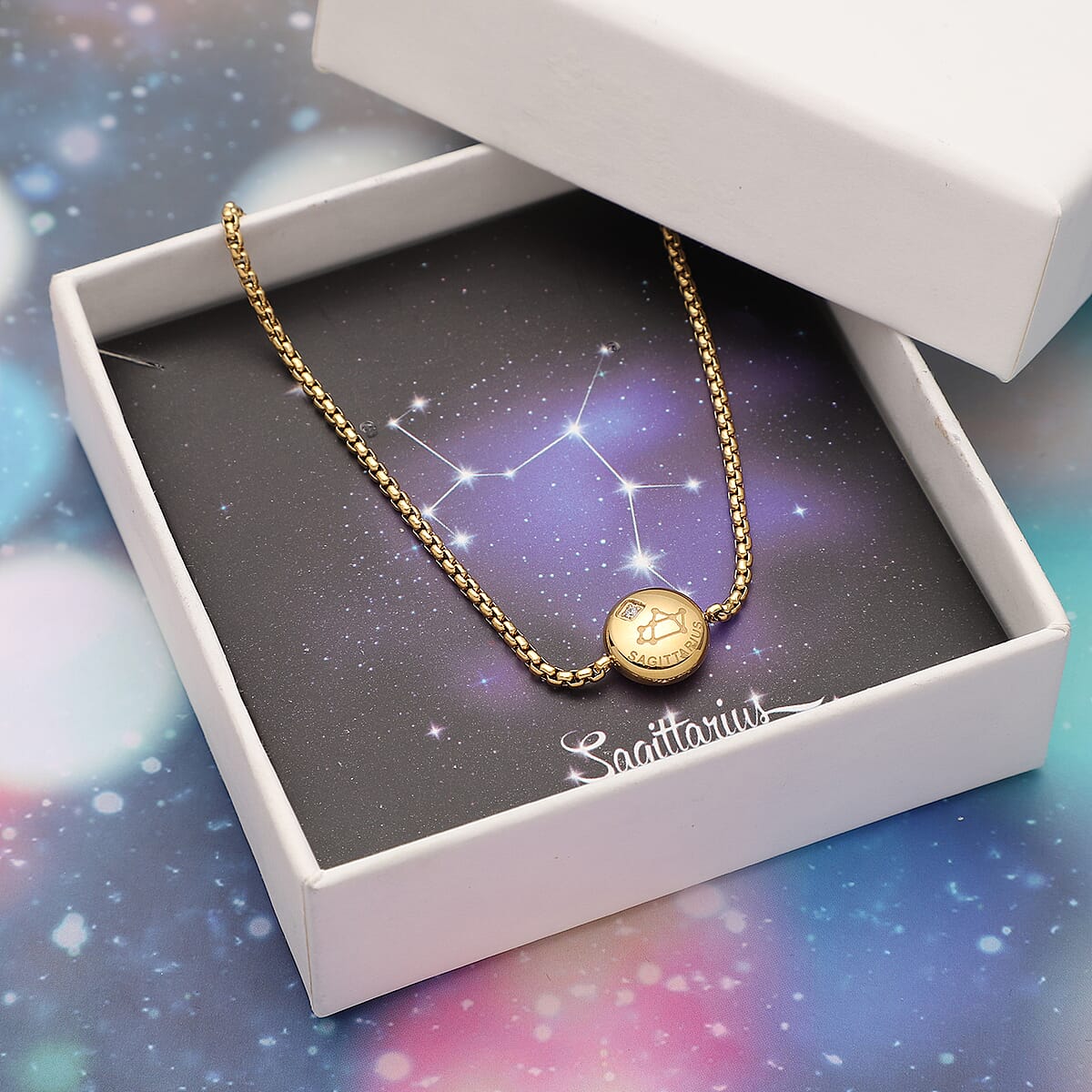 Sagittarius Zodiac Jewelry Gift Box with Austrian Crystal Constellation Bolo Bracelet in ION Plated YG Stainless Steel