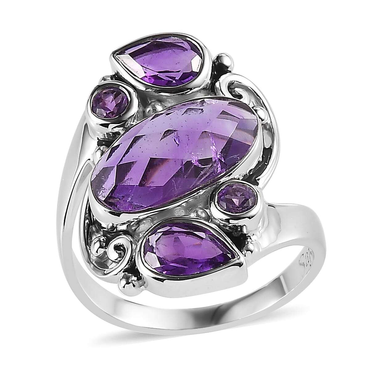 Sajen Silver African Amethyst 4.25 ctw Ring in Rhodium Over Sterling Silver (Size 6.0)