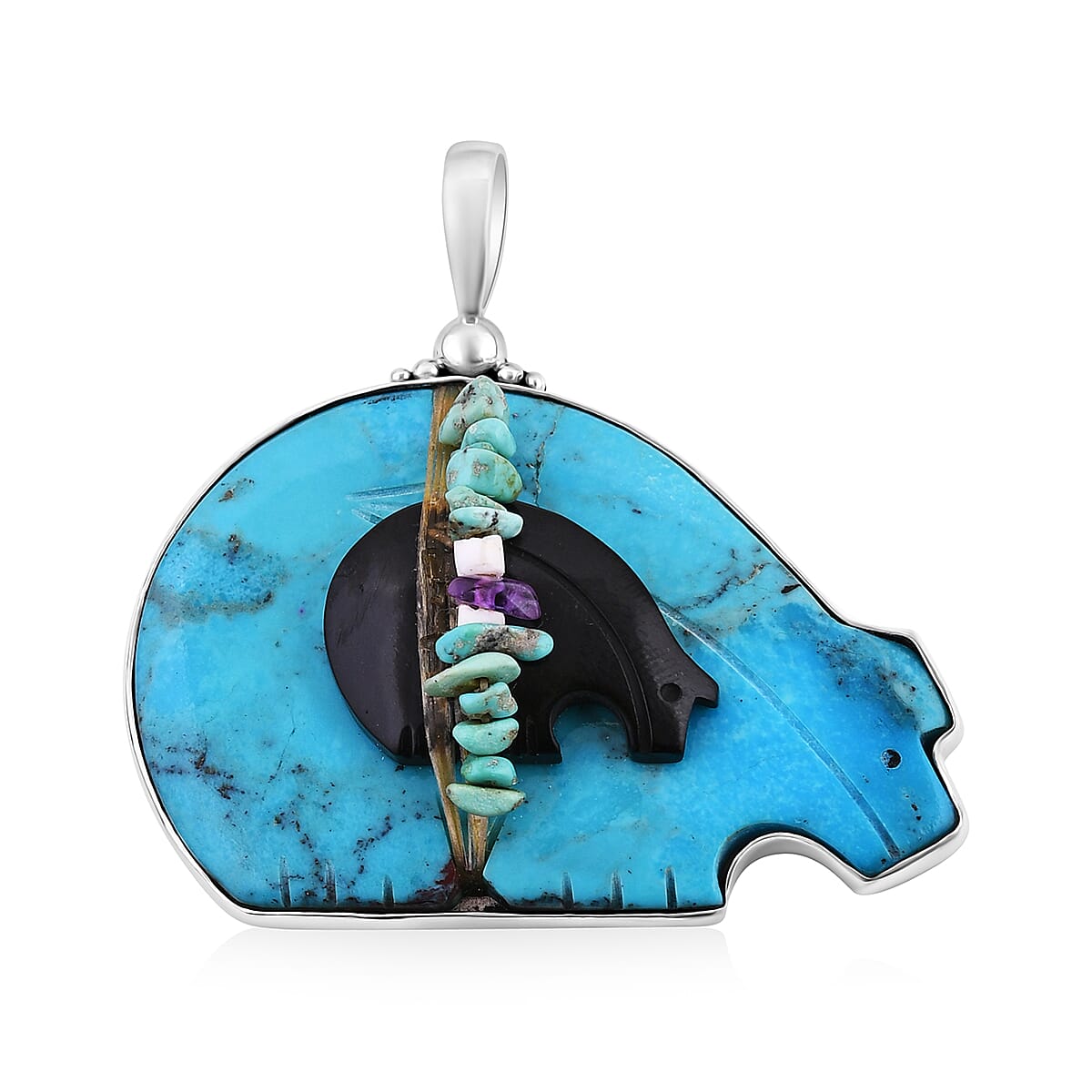 Sajen Silver Blue Turquoise and Multi Gemstone Bear Pendant in Sterling Silver 112.50 ctw