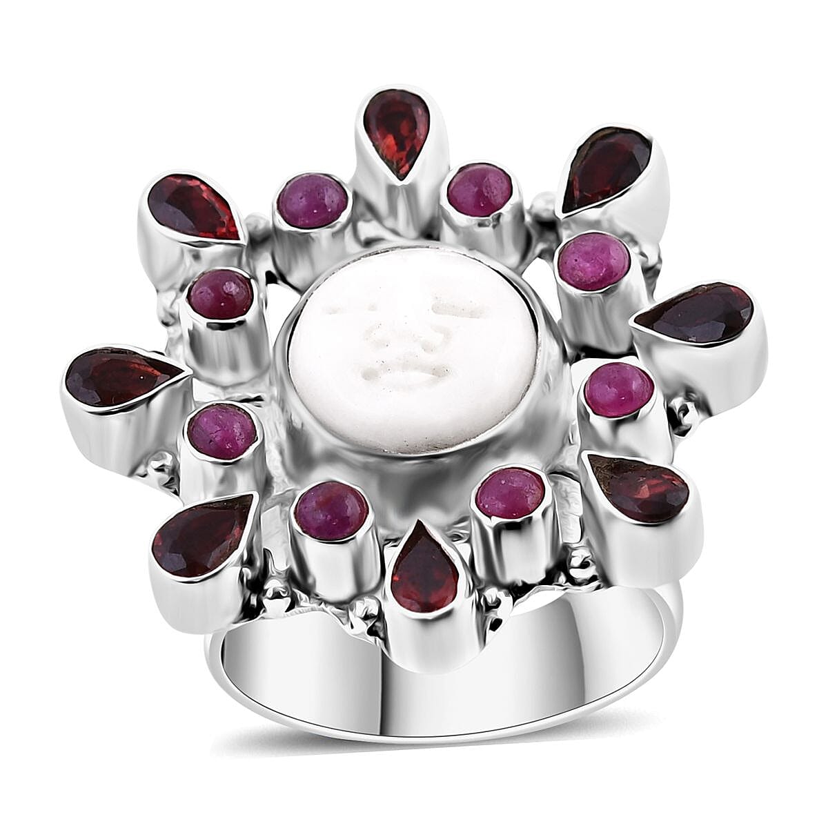Sajen Silver Carved Bone and Multi Gemstone Ring in Sterling Silver (Size 8.0) 3.75 ctw