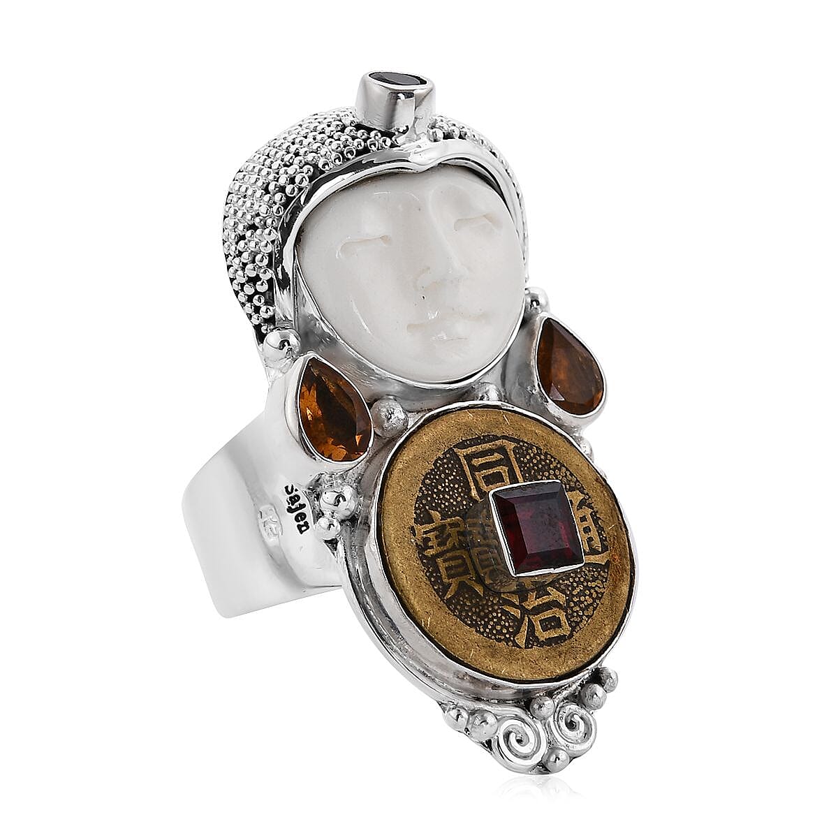 Sajen Silver Carved Bone and Multi Gemstone Ring in Sterling Silver (Size 9.0) 2.20 ctw