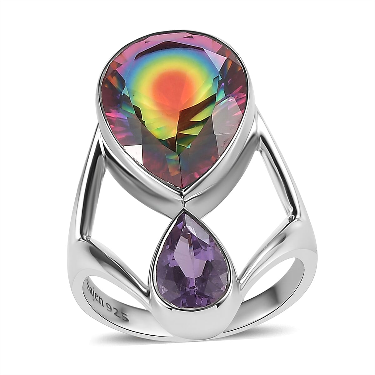 Sajen Silver Celestial Starlight Quartz Doublet and African Amethyst 9.65 ctw Ring in Rhodium Over Sterling Silver (Size 8.0)