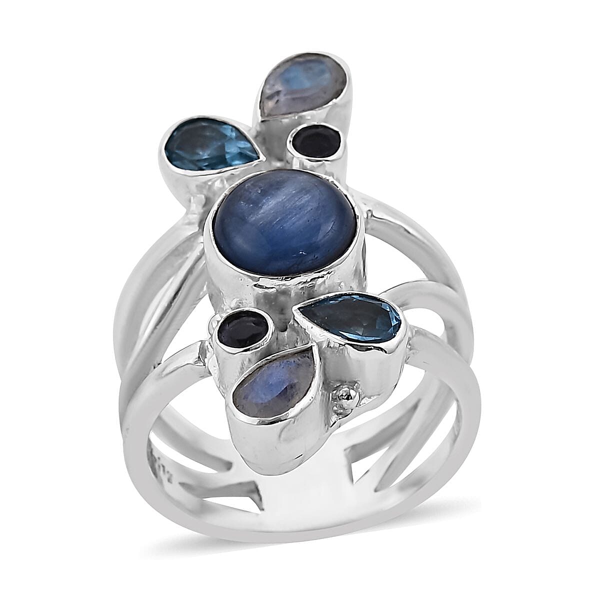 Sajen Silver Himalayan Kyanite and Multi Gemstone Ring in Sterling Silver (Size 8.0) 4.75 ctw