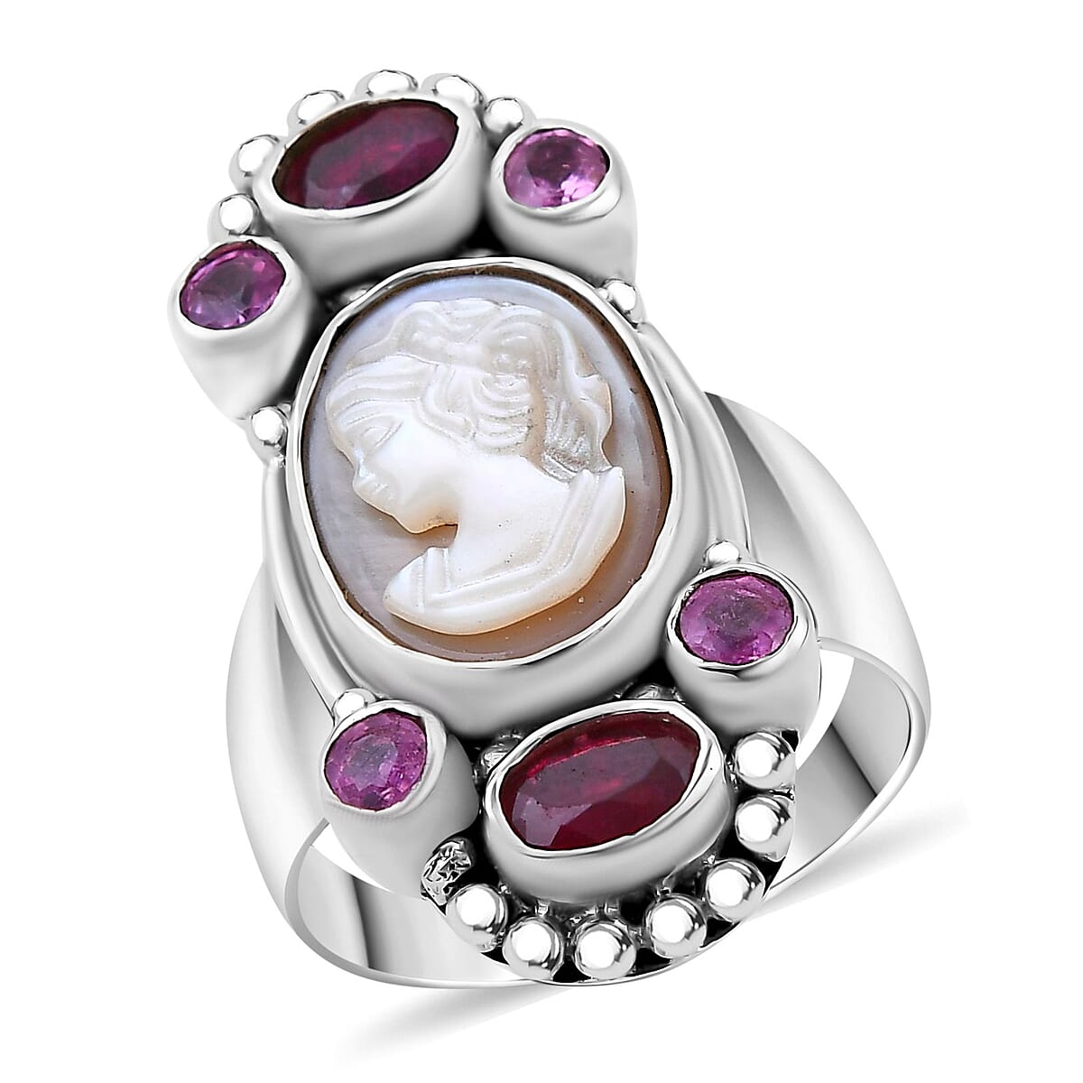 Sajen Silver Pink Cameo and Multi Gemstone 5.20 ctw Ring in Sterling Silver (Size 10.0)