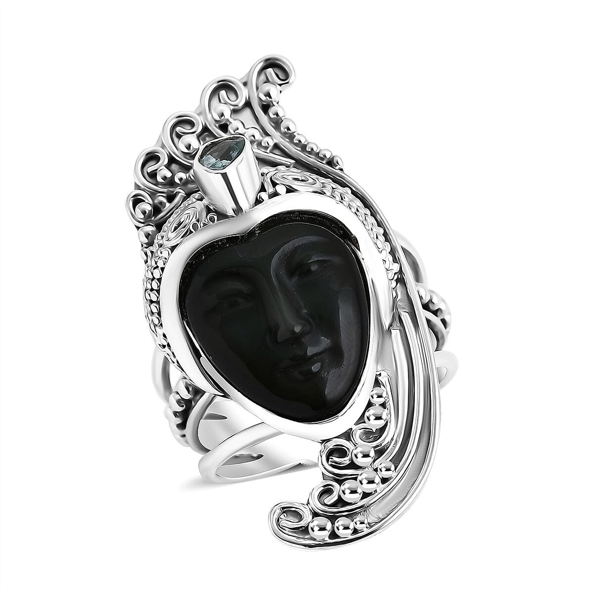 Sajen Silver Rainbow Obsidian Carved and Apatite 7.70 ctw Ring in Sterling Silver (Size 7.0)