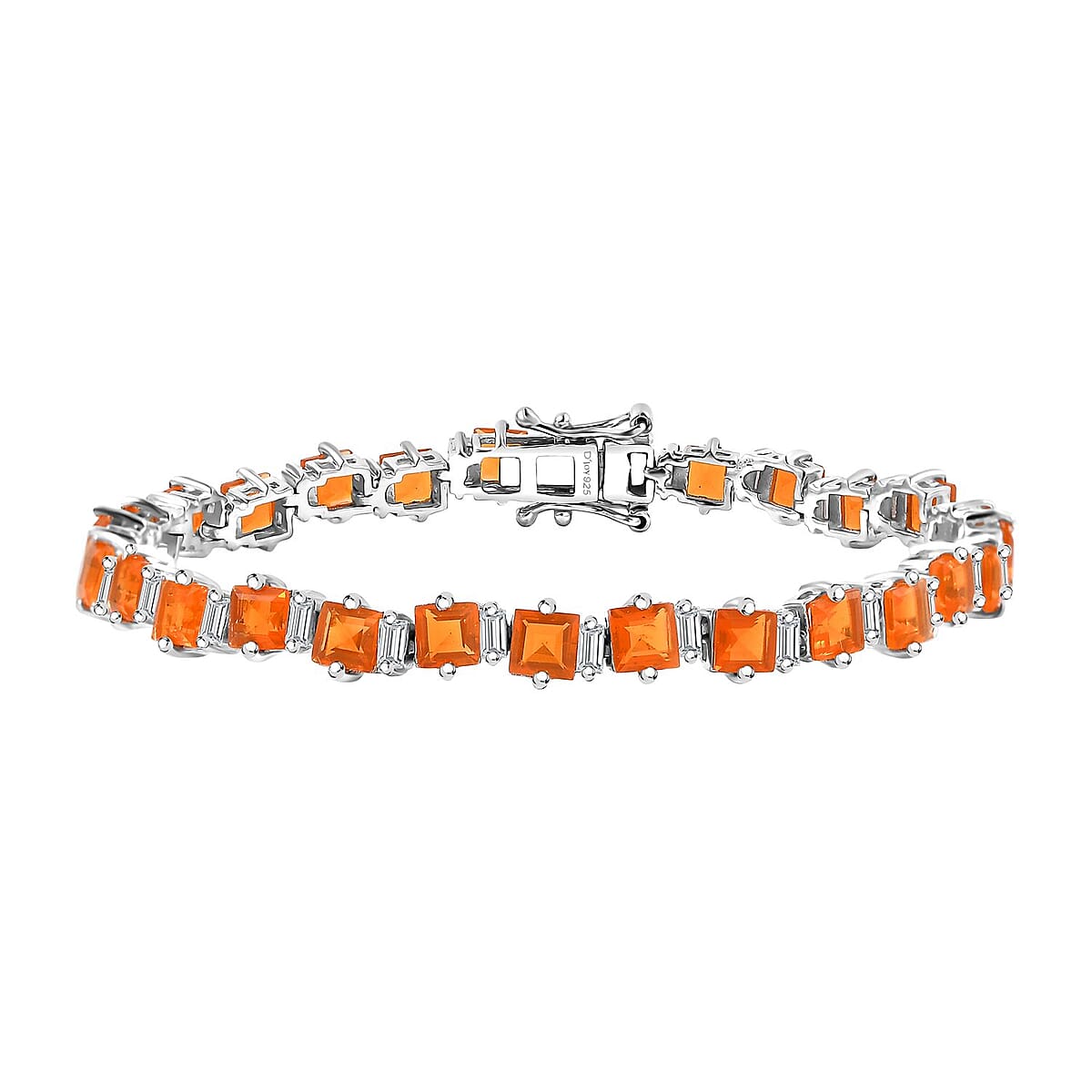 Salamanca Fire Opal and Moissanite 8.00 ctw Sea Waves Bracelet in Rhodium Over Sterling Silver (6.50 In)