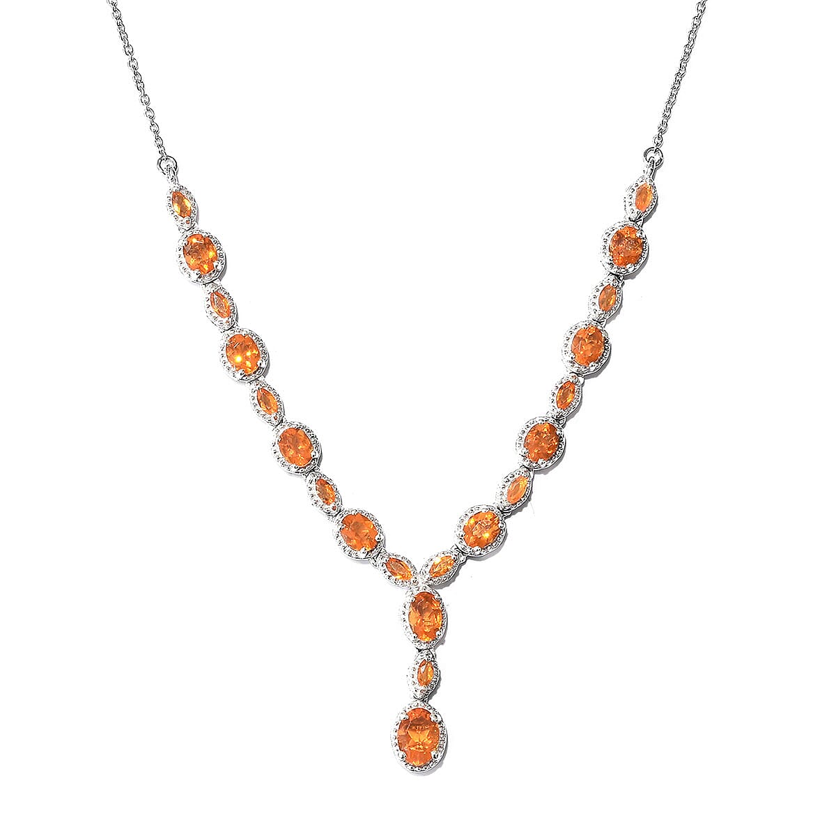 Salamanca Fire Opal Platinum Over Sterling Silver Y-Shape Necklace (18-20 in) 3.35 ctw