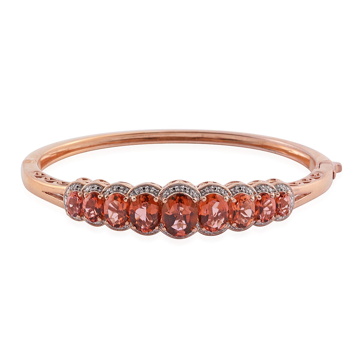 Salmon Sorbet Quartz and Cambodian Zircon Bangle Bracelet in 14K Rose Gold Over Sterling Silver (7.25 in) 8.80 ctw
