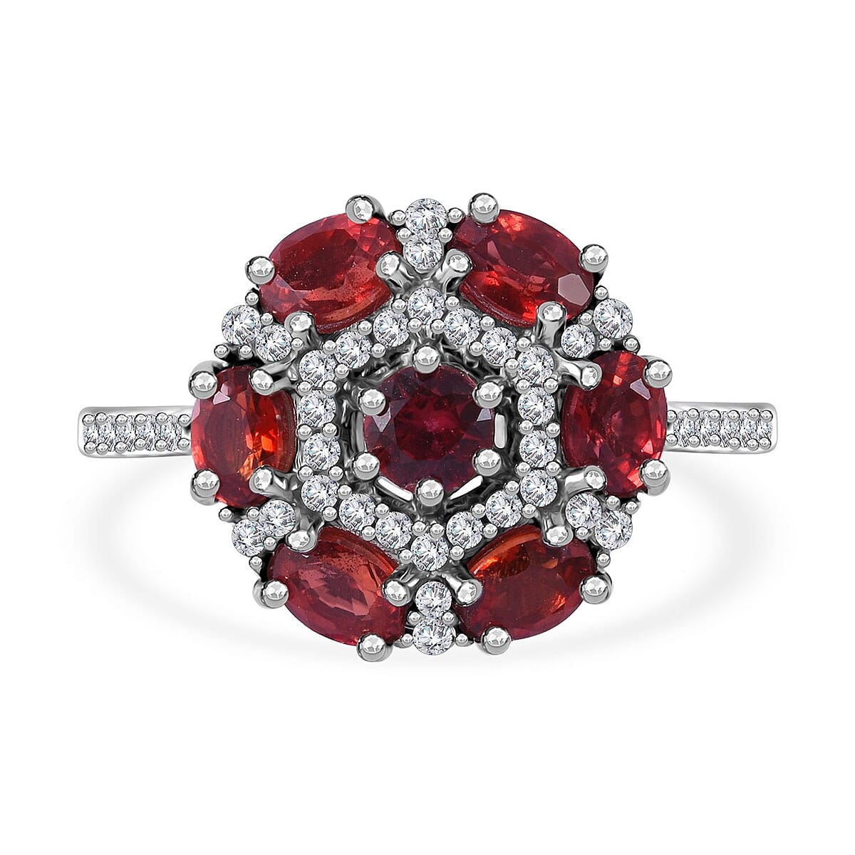 Sanguine Sapphire and White Zircon Art Deco Ring in Rhodium Over Sterling Silver (Size 6.0) 2.00 ctw