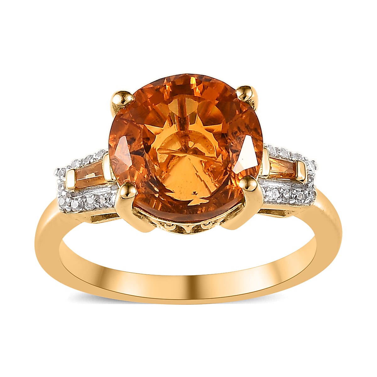 Let your style glow with our Sant Ana Madeira citrine and multi-gemstone ring. This fashion ring, featuring the radiant Sant Ana Madeira citrine, symbolizes warmth and luxury. It's a perfect piece for women who appreciate vibrant elegance, set in vermeil yellow gold-plated sterling silver and complemented by an array of colorful gemstones. Make a statement with this stunning ring, a sophisticated style, and a dazzling color blend.
