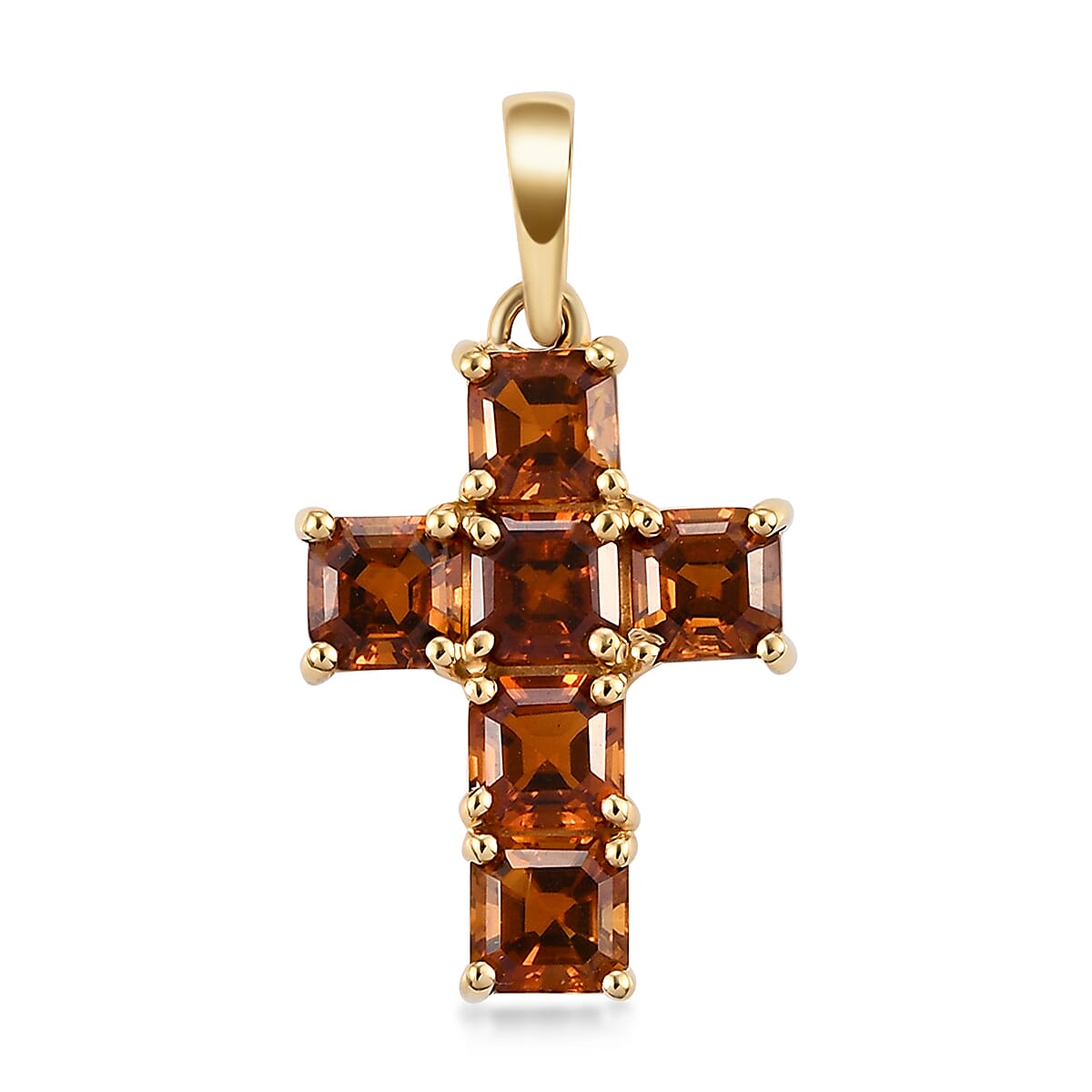 Santa Ana Madeira Citrine Cross Pendant in 14K Yellow Gold Over Sterling Silver 1.80 ctw