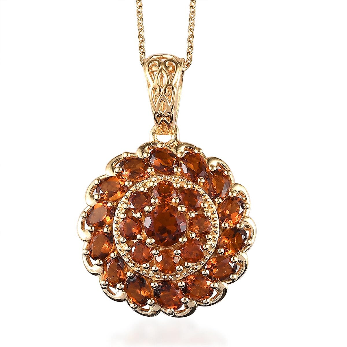 Add exquisite shimmer to your neckline and amaze everyone around. Exhibiting golden-orange hues, this Santa Ana Madeira citrine floral pendant necklace is a perfect piece of jewelry that will get everyone to compliment you. Santa Ana Madeira Citrine accents, studded in a cluster, form a flower that looks blossoming. A flower pendant will bring you tons of positive energy when you feel like you need something to hold onto. On the other hand, a beautiful flower is considered to be a talisman of love. This pendant necklace can be worn with any outfit. This versatile accessory in yellow gold vermeil-plated sterling silver helps us look more put together within a few minutes.