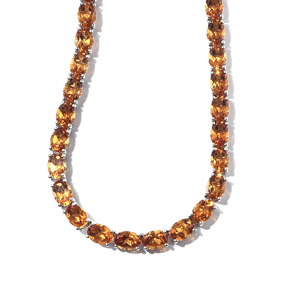 Santa Ana Madeira Citrine Tennis Necklace 18 Inches in Platinum Over Sterling Silver 25.15 Grams 48.75 ctw