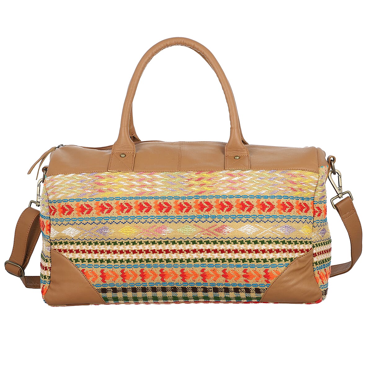 SANTA FE Style Black Genuine Leather Jacquard Luggage Bag (18" x 9.5" x 9")