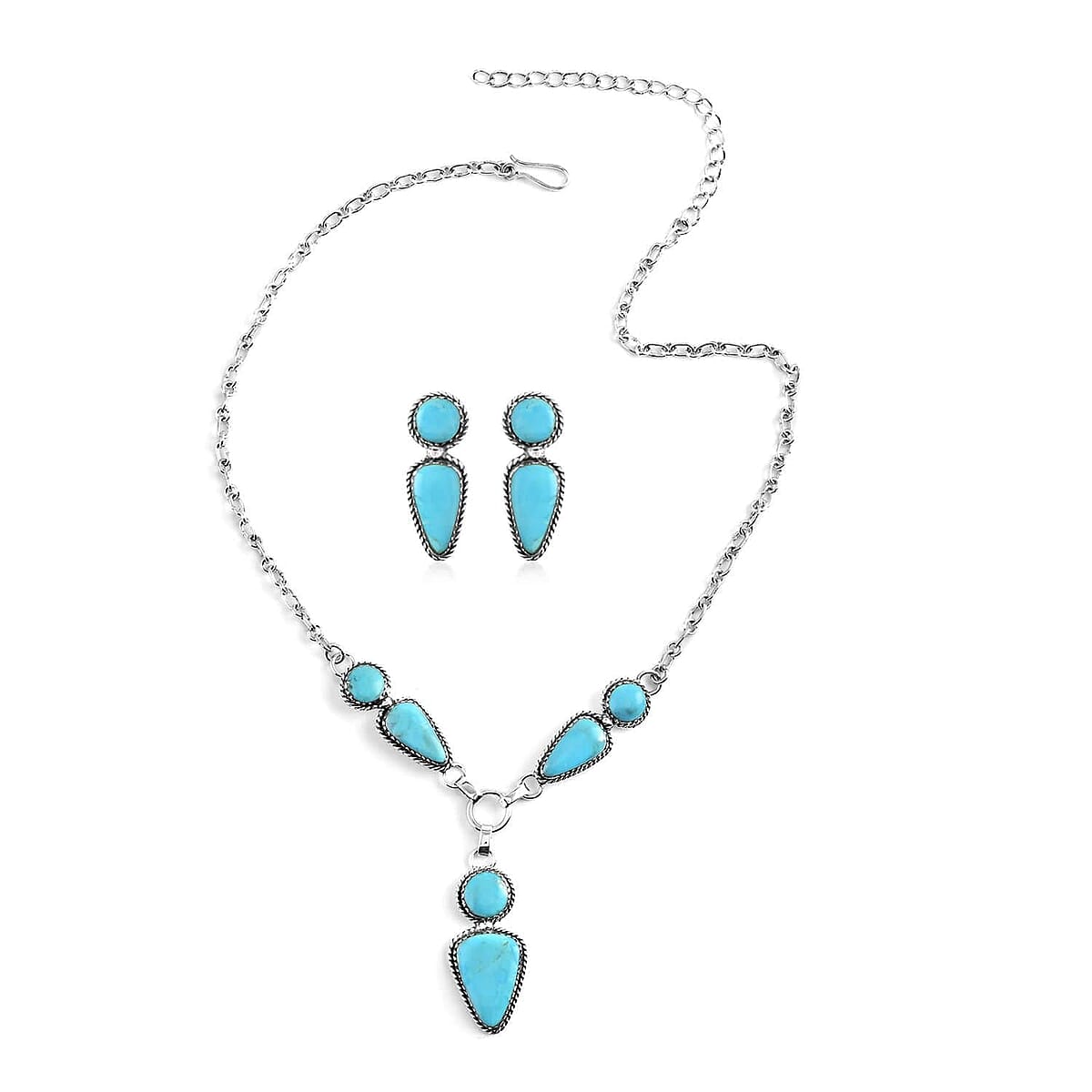 SANTA FE Style Blue Turquoise Necklace (19 Inches) and Earrings in Sterling Silver (15 g) 15.50 ctw