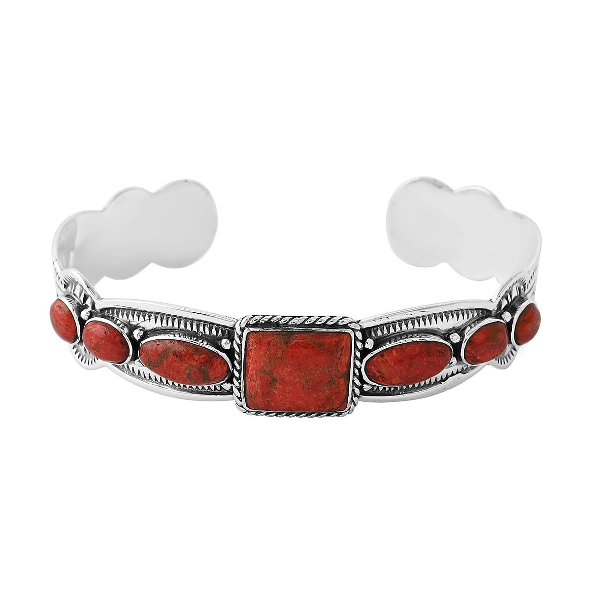 Elevate your style with our enchanting Santa Fe-style coral bracelet in sterling silver – a mesmerizing blend of Southwest charm and timeless elegance! This exquisite piece is crafted for those who seek to make a statement, effortlessly fusing tradition with contemporary allure. As you adorn your wrist with this radiant accessory, you'll embody the spirit of the Santa Fe desert, where culture and artistry converge. Let the vibrant coral hues and sterling silver brilliance captivate your senses, transporting you to a realm of unparalleled sophistication.