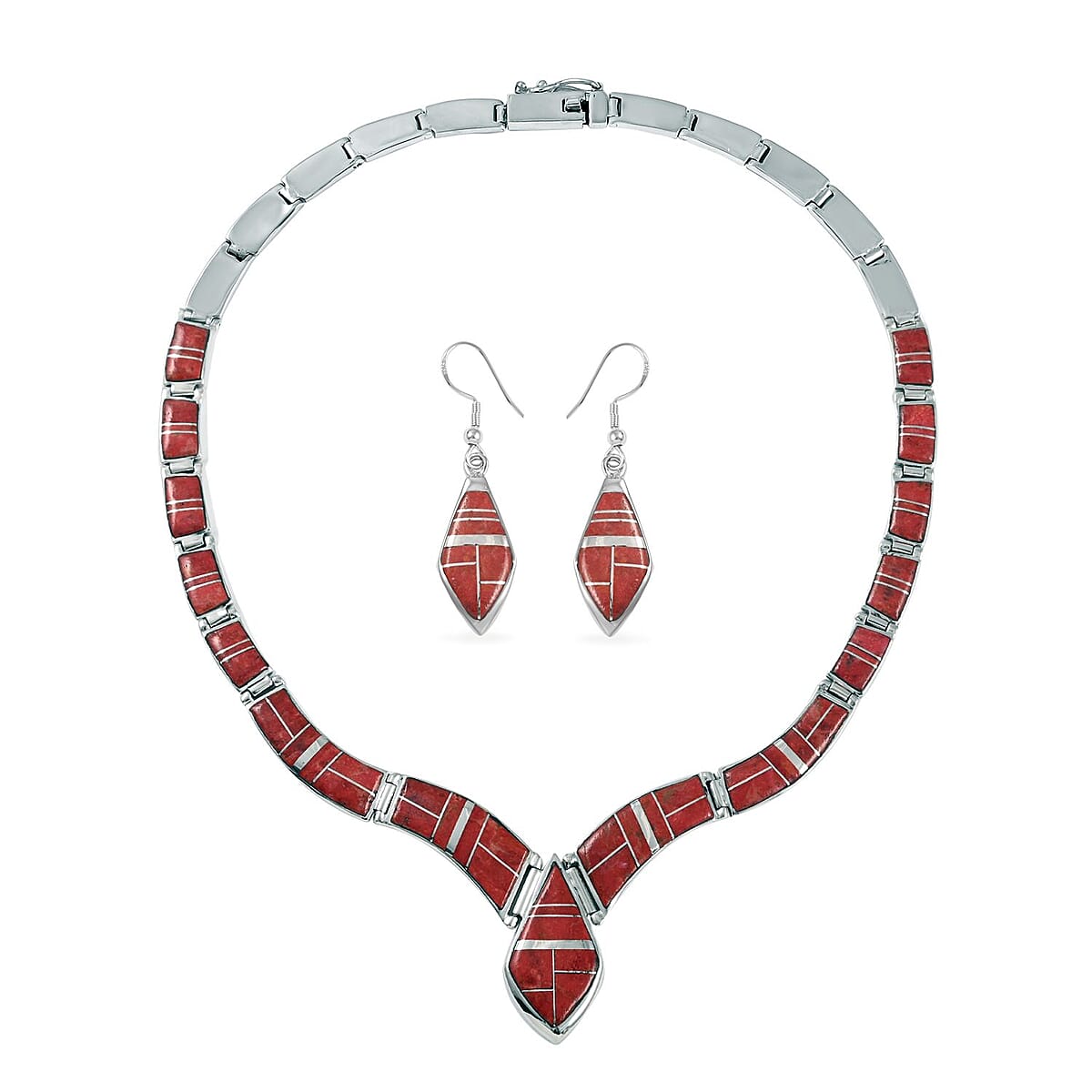 Santa Fe Style Coral Dangle Earrings and Necklace 16 Inches in Sterling Silver 57.65 Grams