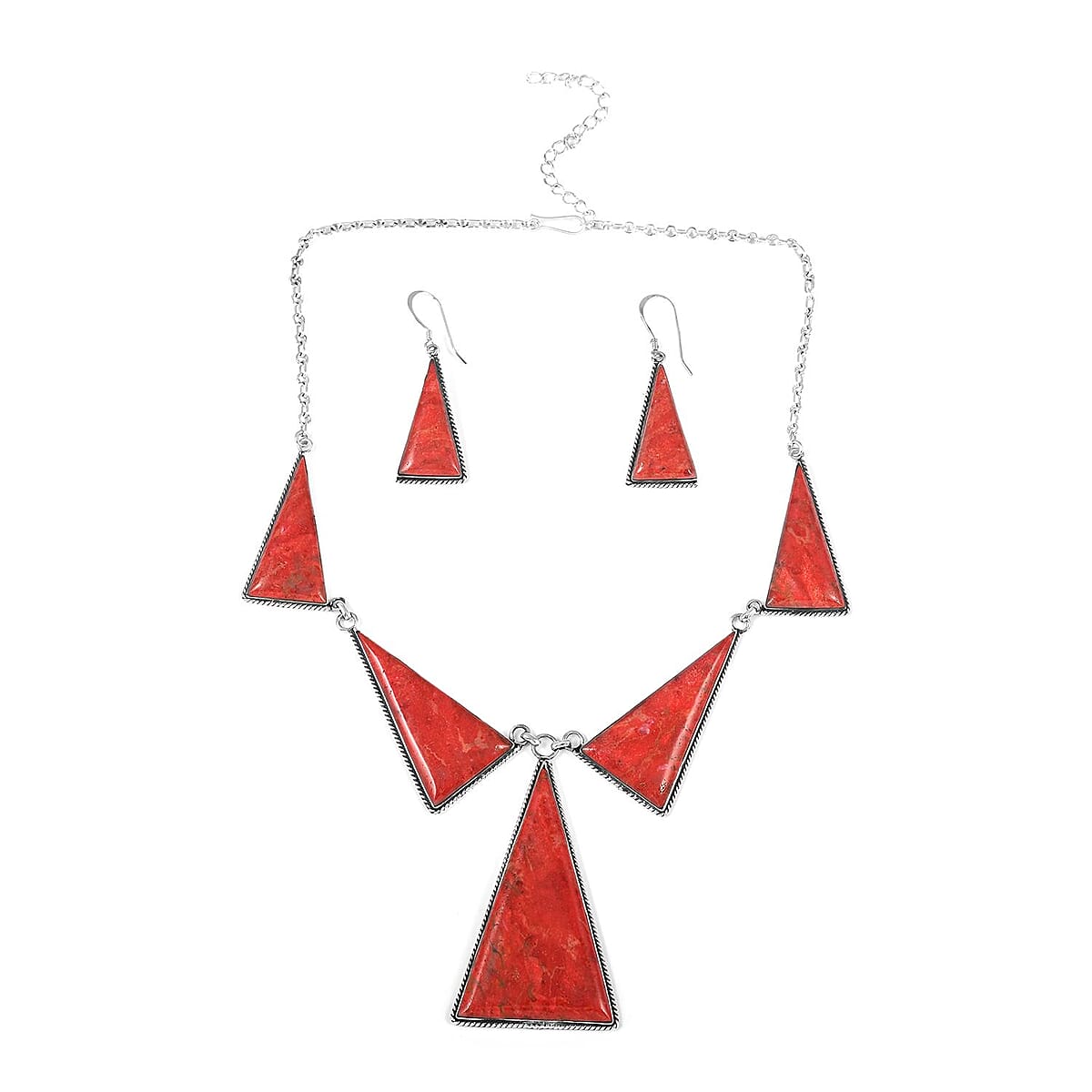 Santa Fe Style Coral Dangle Earrings and Statement Necklace 20 Inches in Sterling Silver