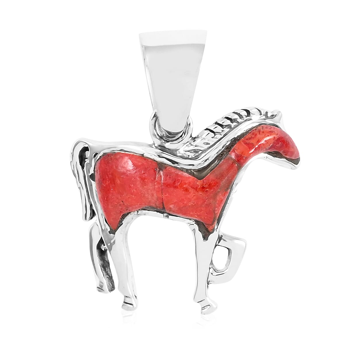 Santa Fe Style Coral Horse Pendant in Sterling Silver