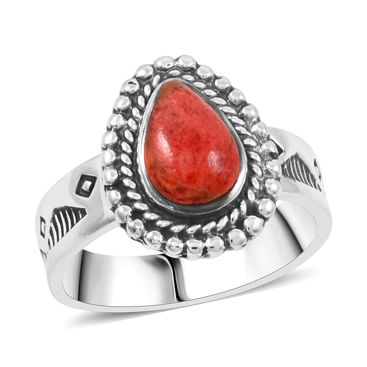 Santa Fe Style Enhanced Red Coral 2.50 ctw Ring in Sterling Silver (Size 11.0)