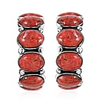 Santa Fe Style Enhanced Red Coral Half Hoop Earrings in Sterling Silver 3.75 ctw