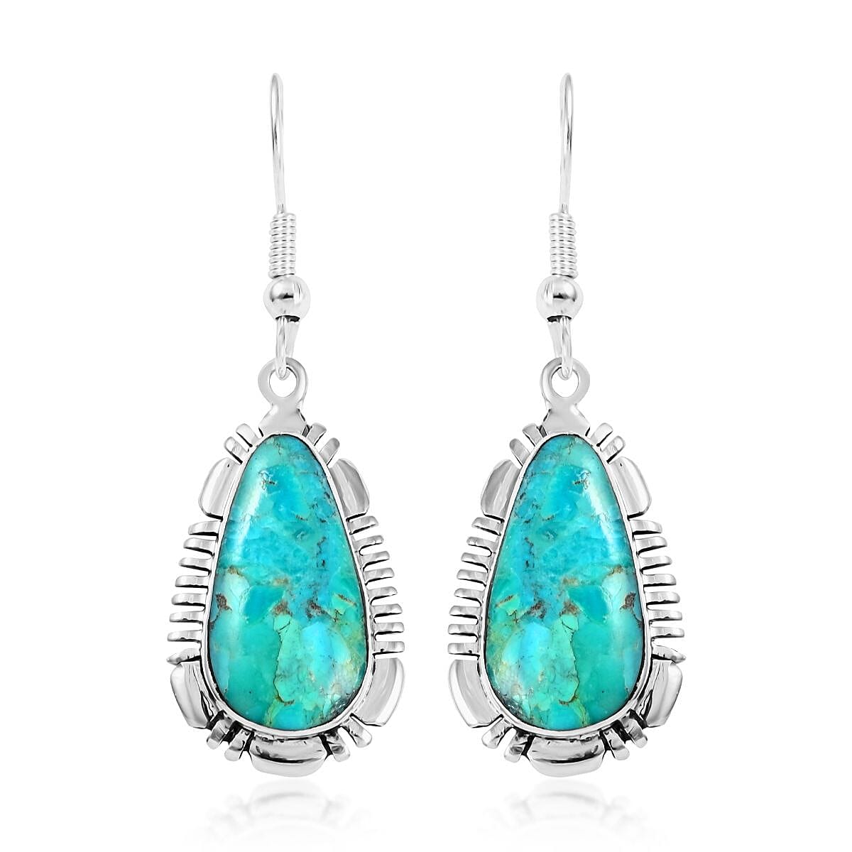 SANTA FE Style Kingman Turquoise Dangle Earrings in Sterling Silver 4.00 ctw