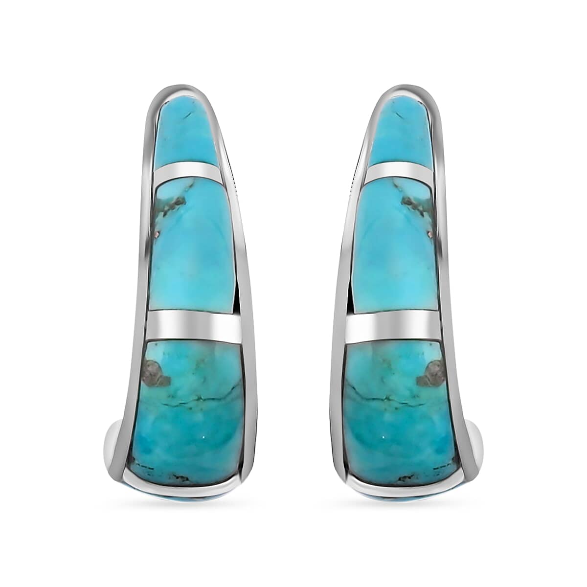 Santa Fe Style Kingman Turquoise Earrings For Women in Sterling Silver