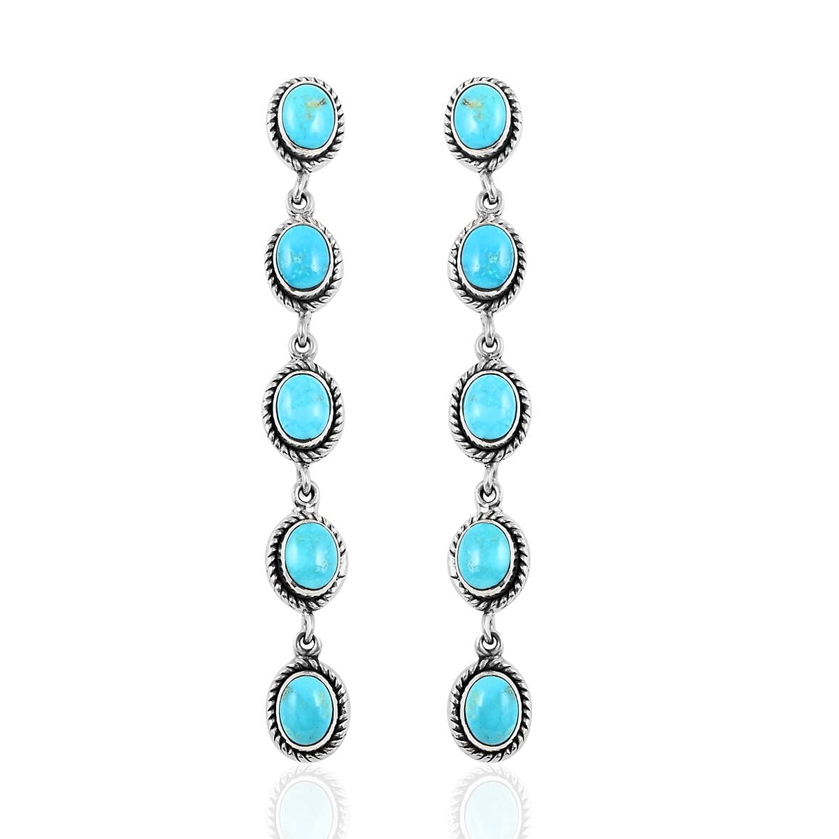 Santa Fe Style Kingman Turquoise Earrings in Sterling Silver 17.50 ctw
