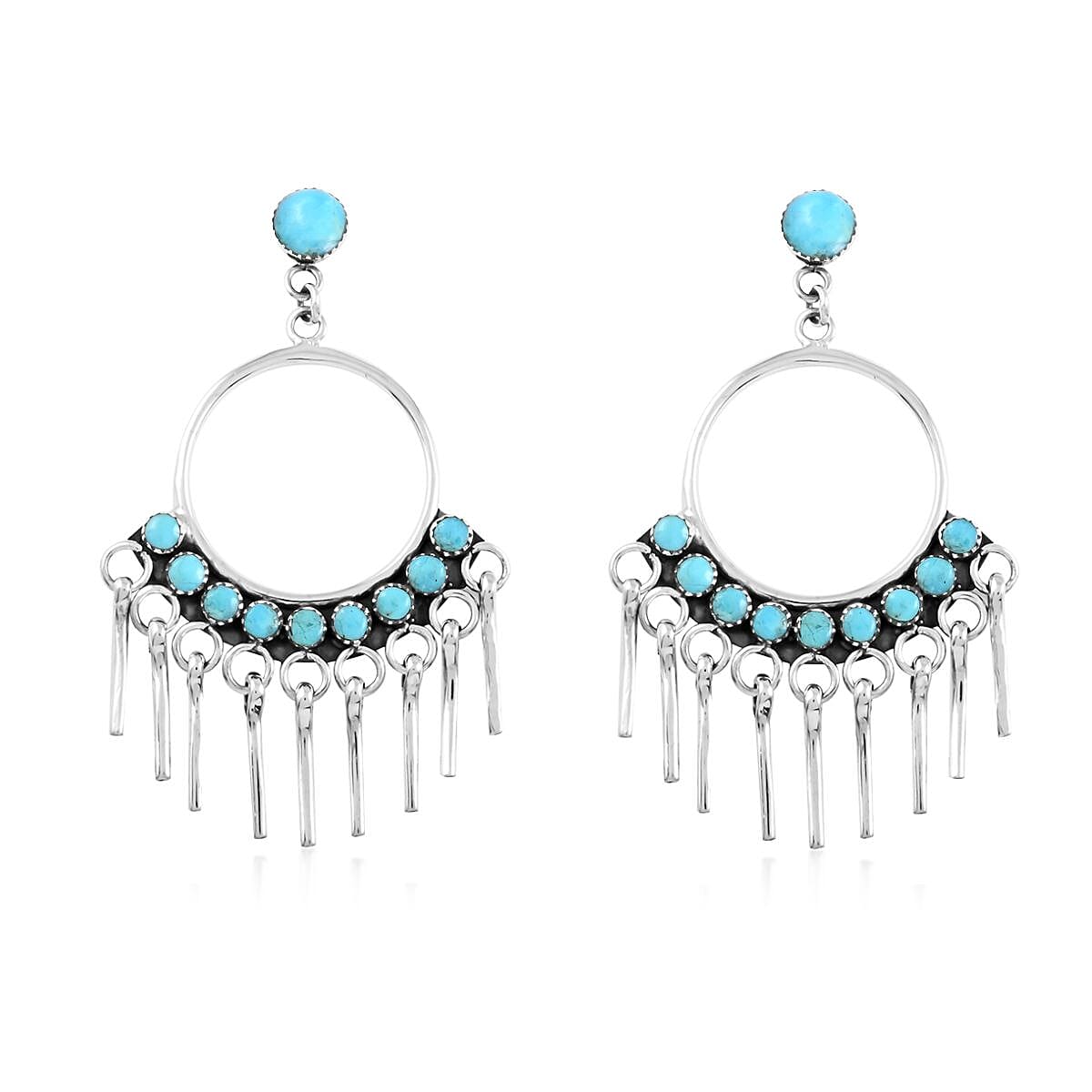 Santa Fe Style Kingman Turquoise Earrings in Sterling Silver 2.25 ctw