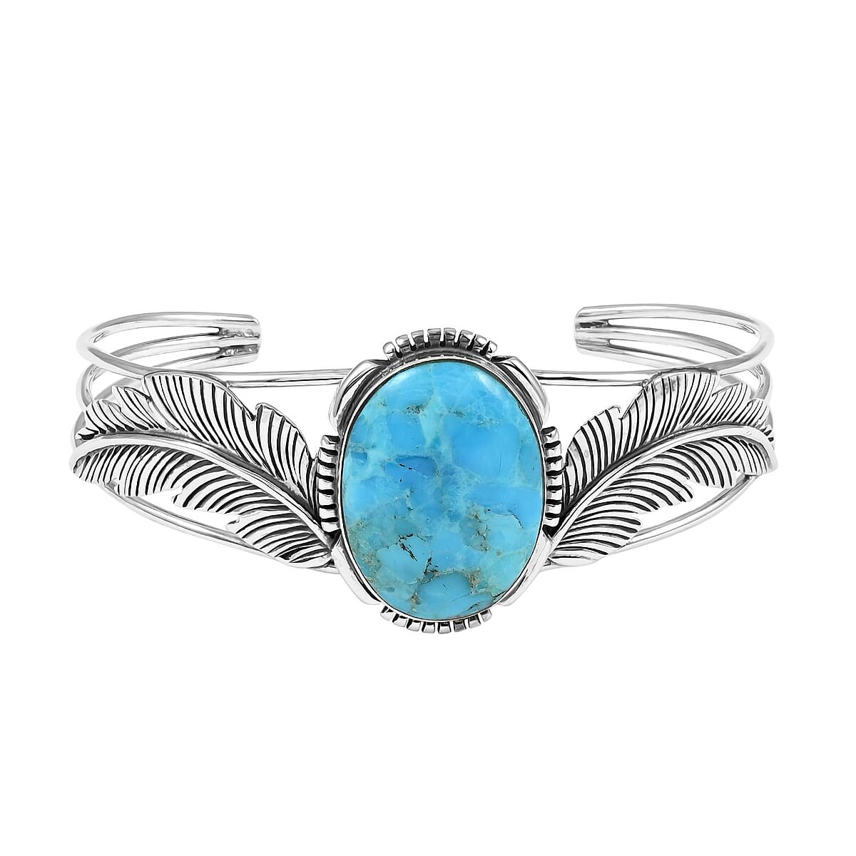 Santa Fe Style Kingman Turquoise Feather Cuff Bracelet in Sterling Silver (7.00 In) 16.50 ctw