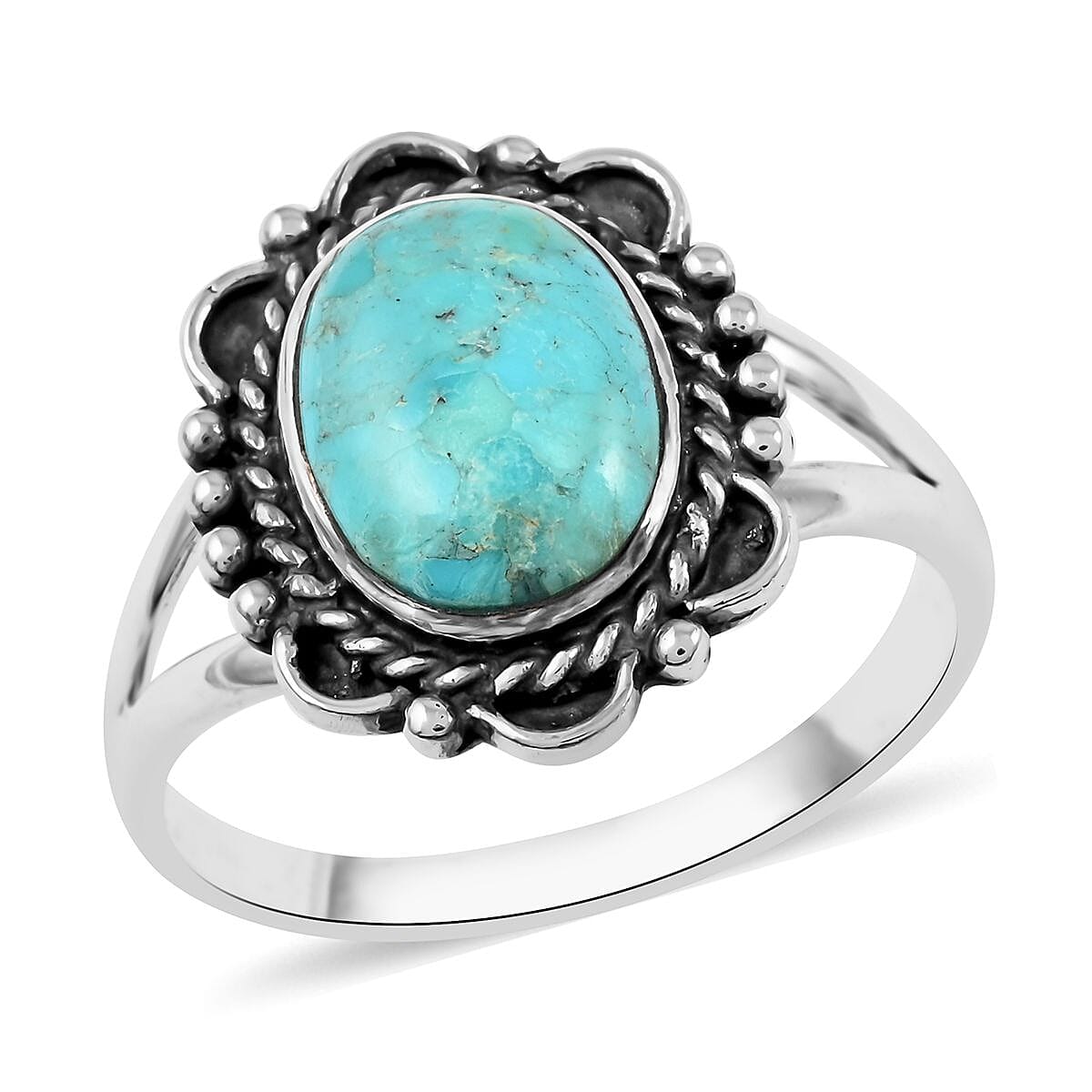 Santa Fe Style Kingman Turquoise Ring in Sterling Silver 3.25 ctw