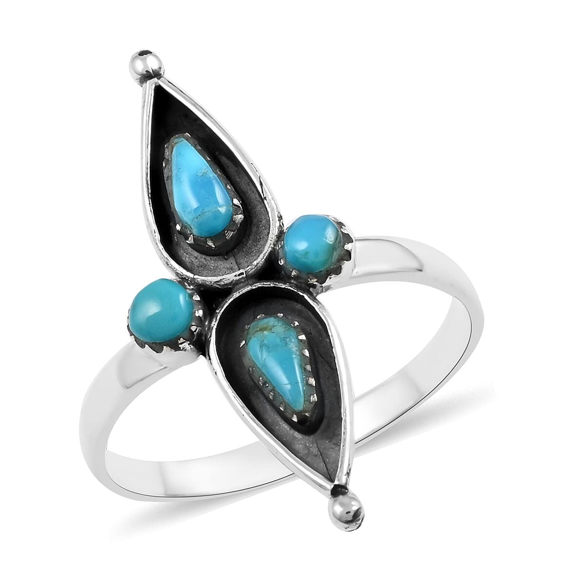Ignite your personal style with our elongated Santa Fe style ring in sterling silver. This meticulously designed ring features four fancy-shaped gemstones arranged to enhance length and elegance. Drawing inspiration from Adobe Pueblo architecture, it's not just an accessory, but a fashion-forward embodiment of Southwestern spirit.
