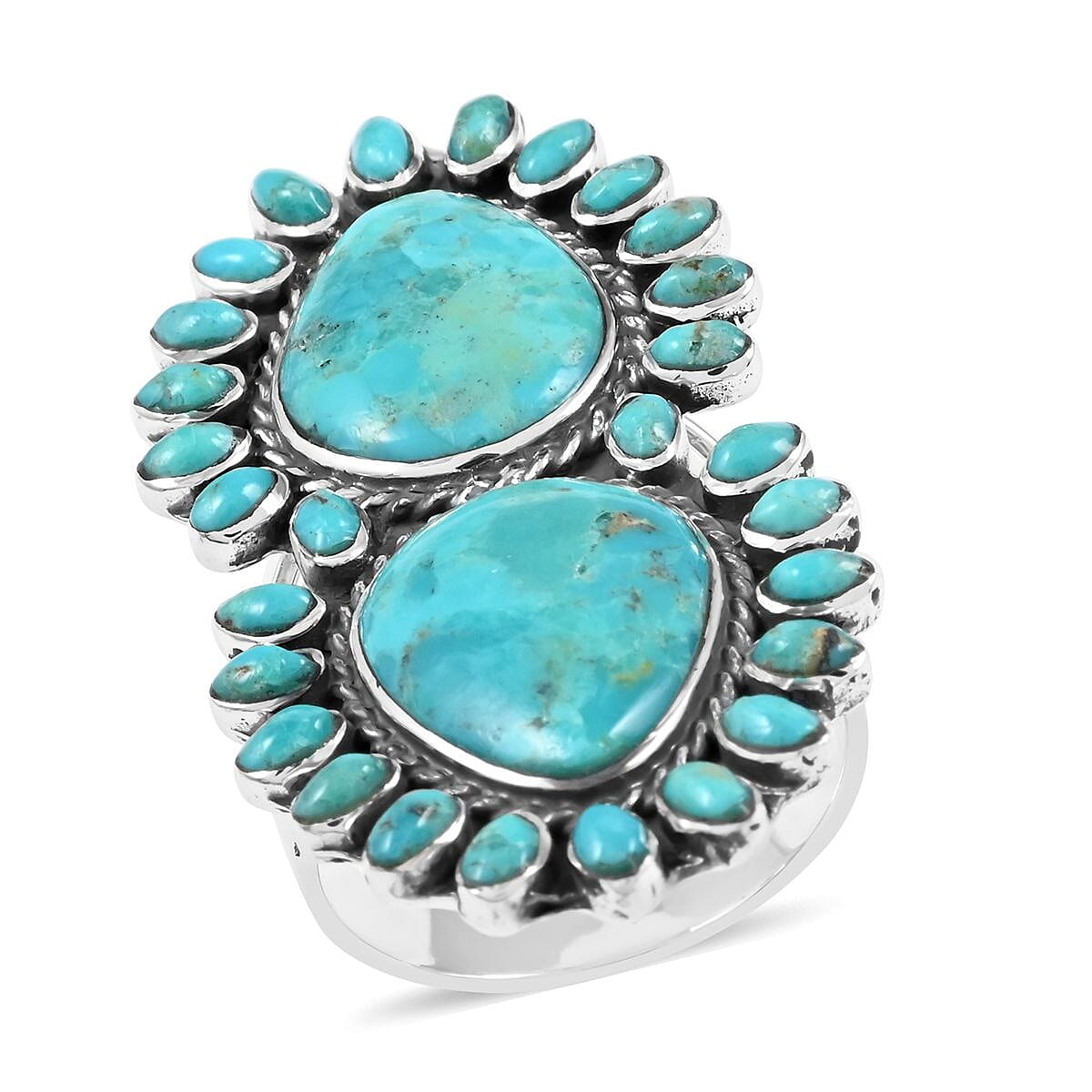 Santa Fe Style Kingman Turquoise Ring in Sterling Silver (Size 6.0) 5.00 ctw