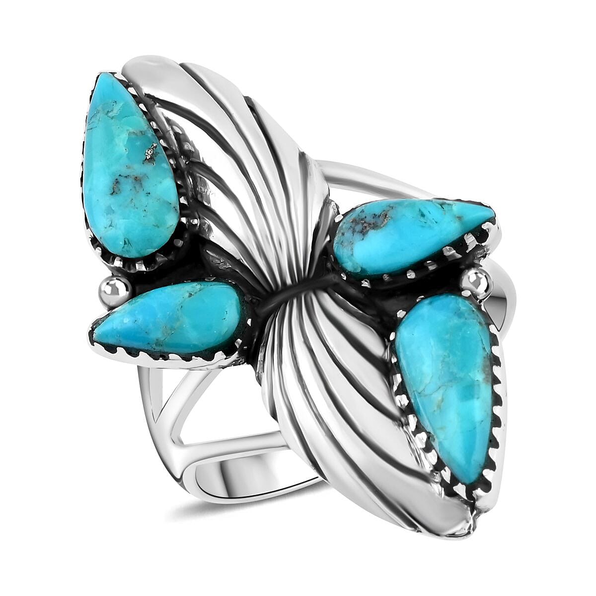 Santa Fe Style Kingman Turquoise Ring in Sterling Silver (Size 8.0) 2.10 ctw