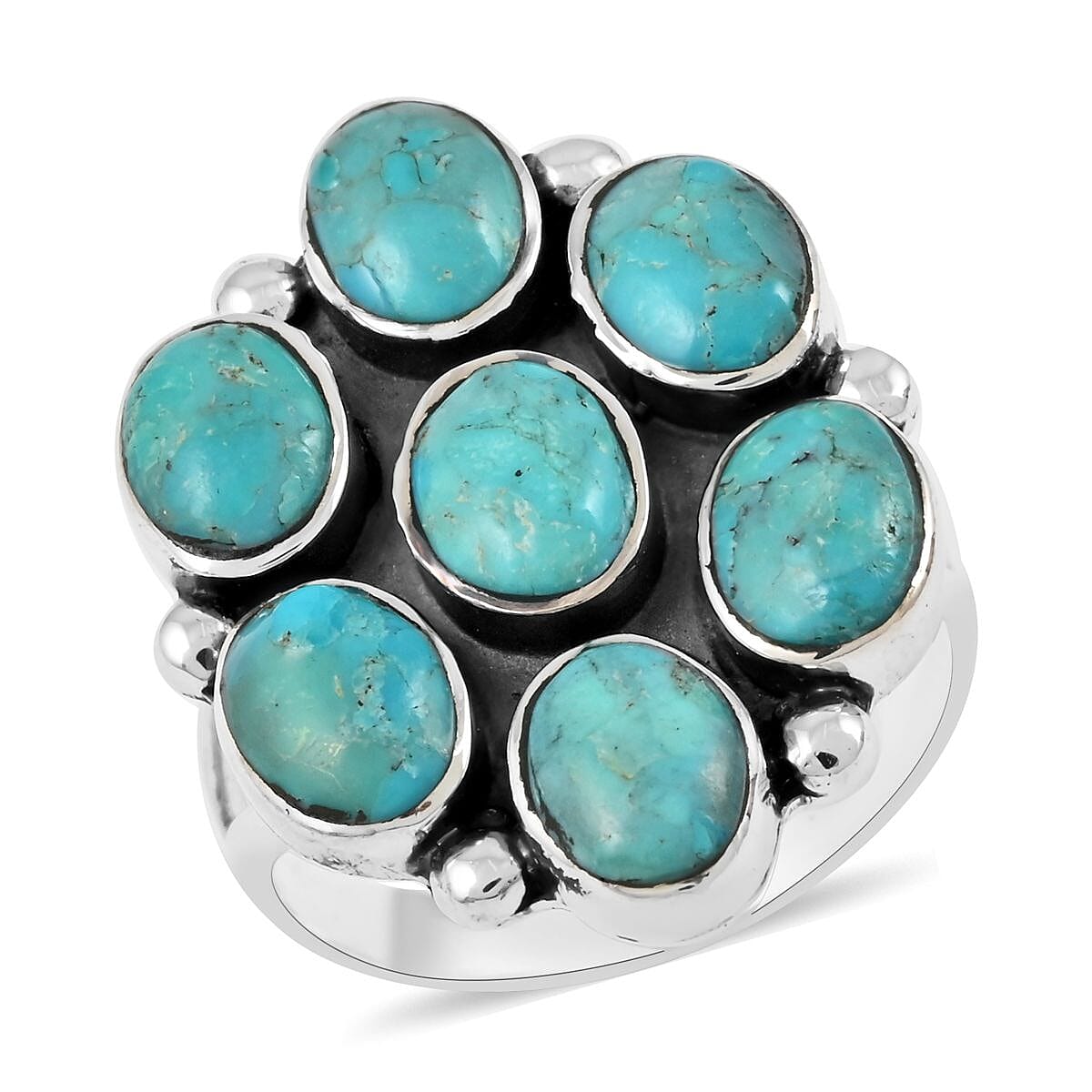 Santa Fe Style Kingman Turquoise Ring in Sterling Silver (Size 9.0) 5.25 ctw