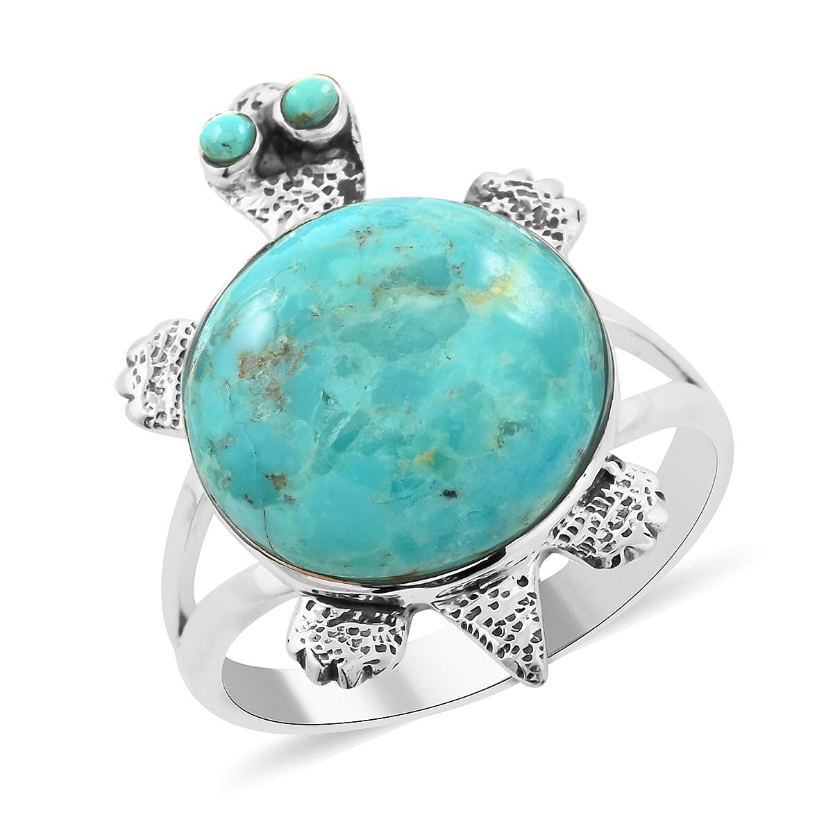 Santa Fe Style Kingman Turquoise Turtle Ring in Sterling Silver (Size 11.0) 8.00 ctw