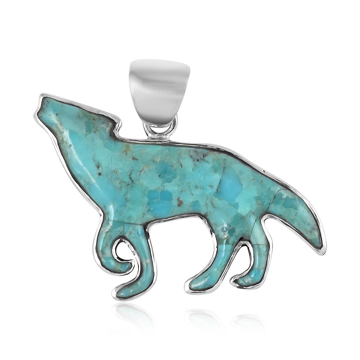 Santa Fe Style Kingman Turquoise Wolf Pendant in Sterling Silver 5.75 ctw
