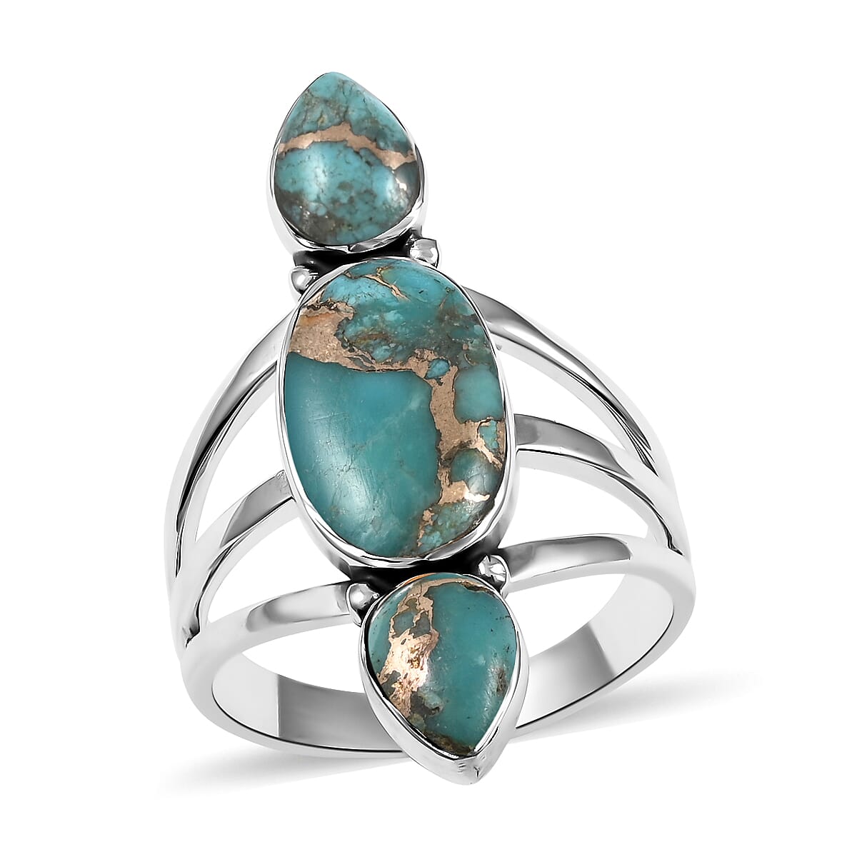 The timeless three-stone design has been modified in this genuine gemstone ring to make it look elongated and versatile. Three stone designs are symbolic of the past, present, and future. These styles of rings are also known as the trilogy rings. In regular three-stone rings, the gemstones are placed on a horizontal plane but, gemstones in this ring are placed vertically. Made of sterling silver, this trilogy genuine gemstone ring features three genuine gemstones placed in the bezel setting for a secure hold. This highly elaborate and stylish ring can be worn for any occasion or any setting. Santa Fe collection features bold and colorful southwest-inspired pieces of jewelry that are crafted with sterling silver.