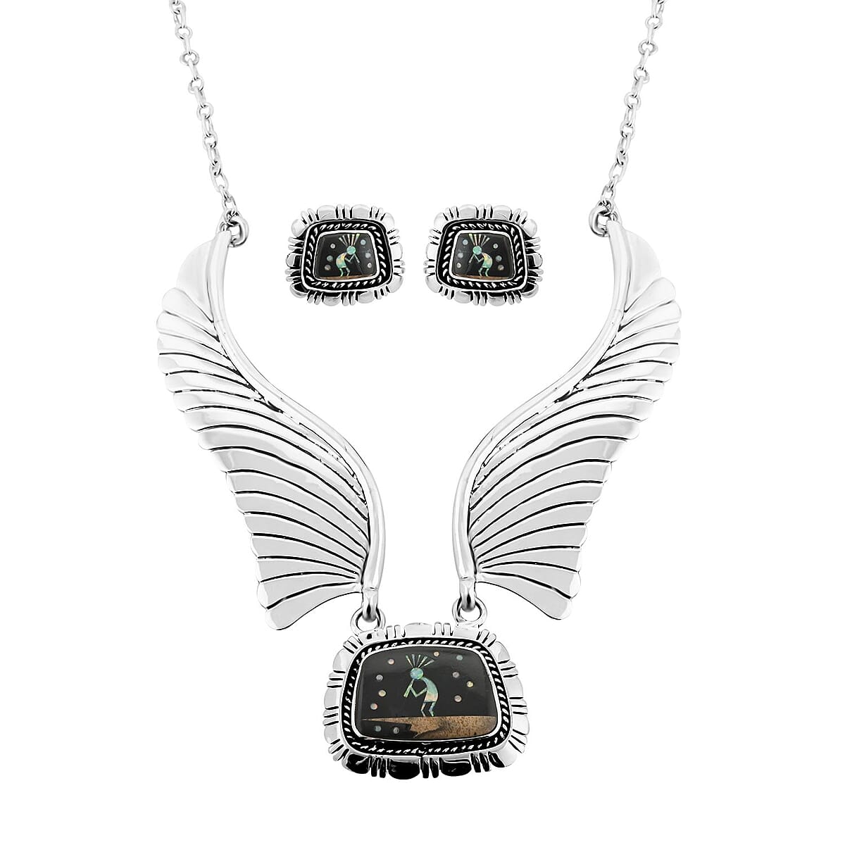 Santa Fe Style Multi Gemstone Kokopelli Earrings and Necklace 18 Inches in Sterling Silver 9.95 ctw
