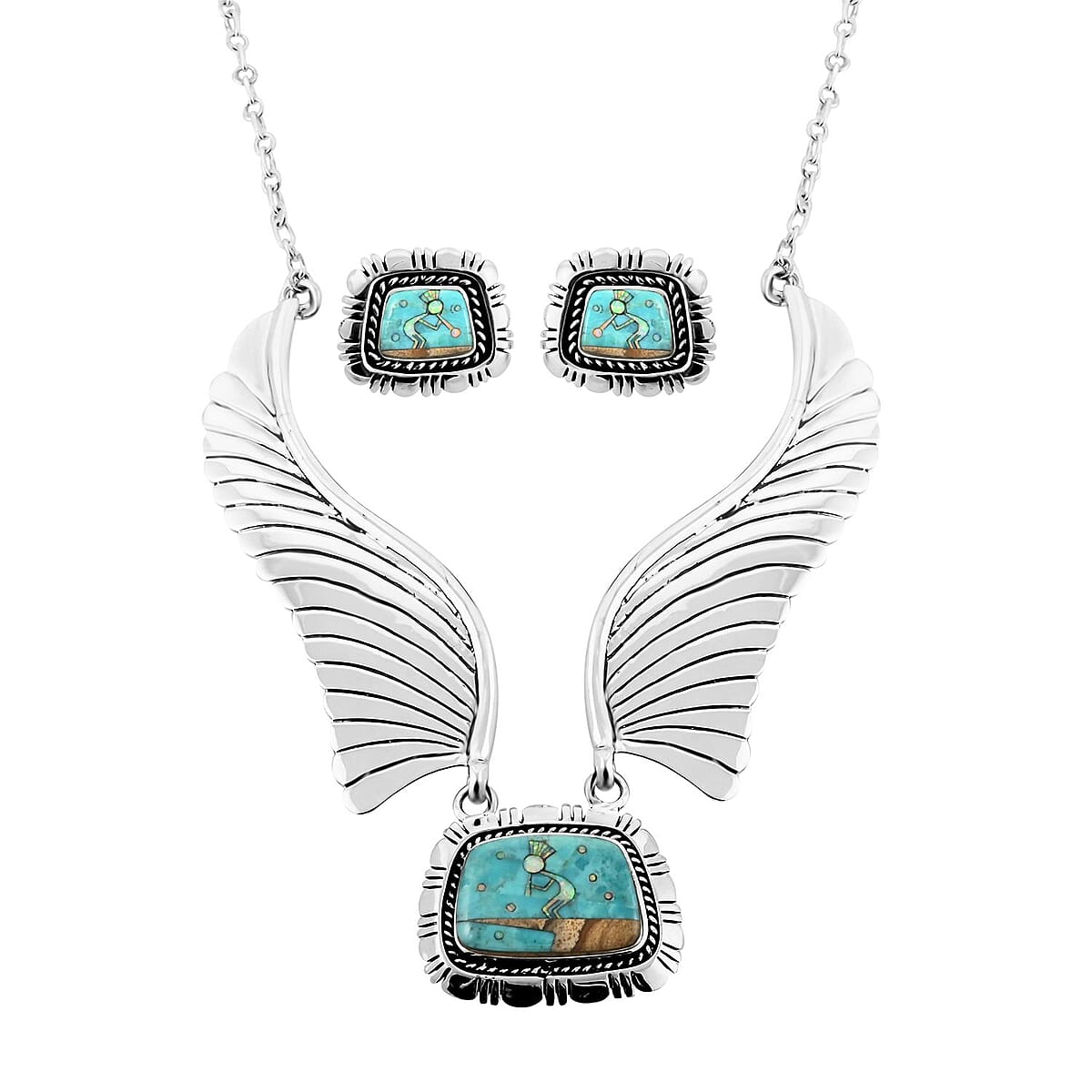 Santa Fe Style Multi Gemstone Kokopelli Earrings and Necklace 18 Inches in Sterling Silver 9.95 ctw